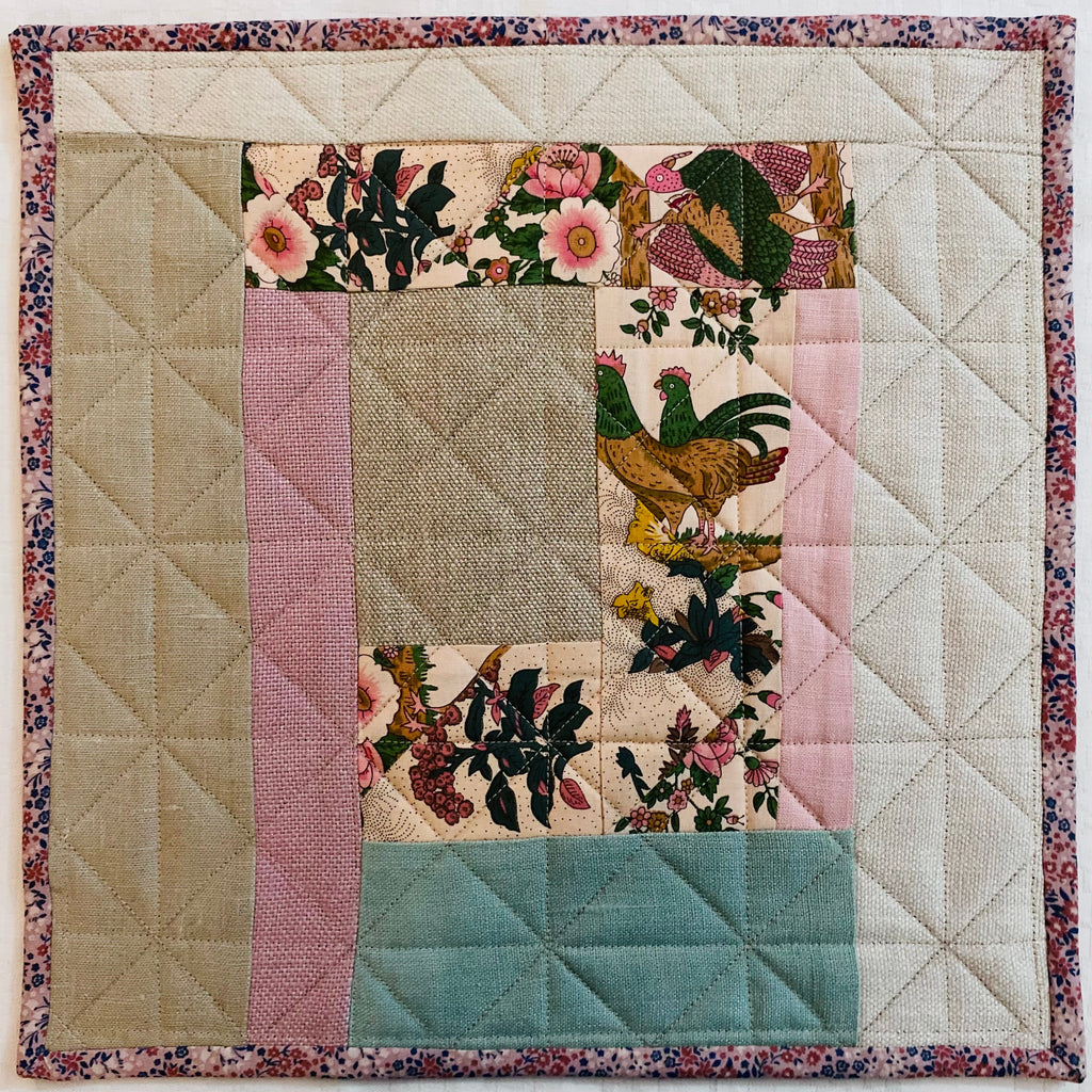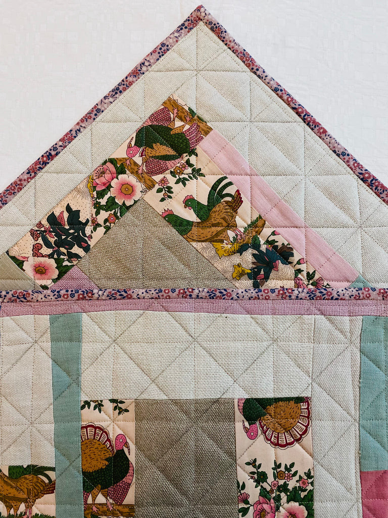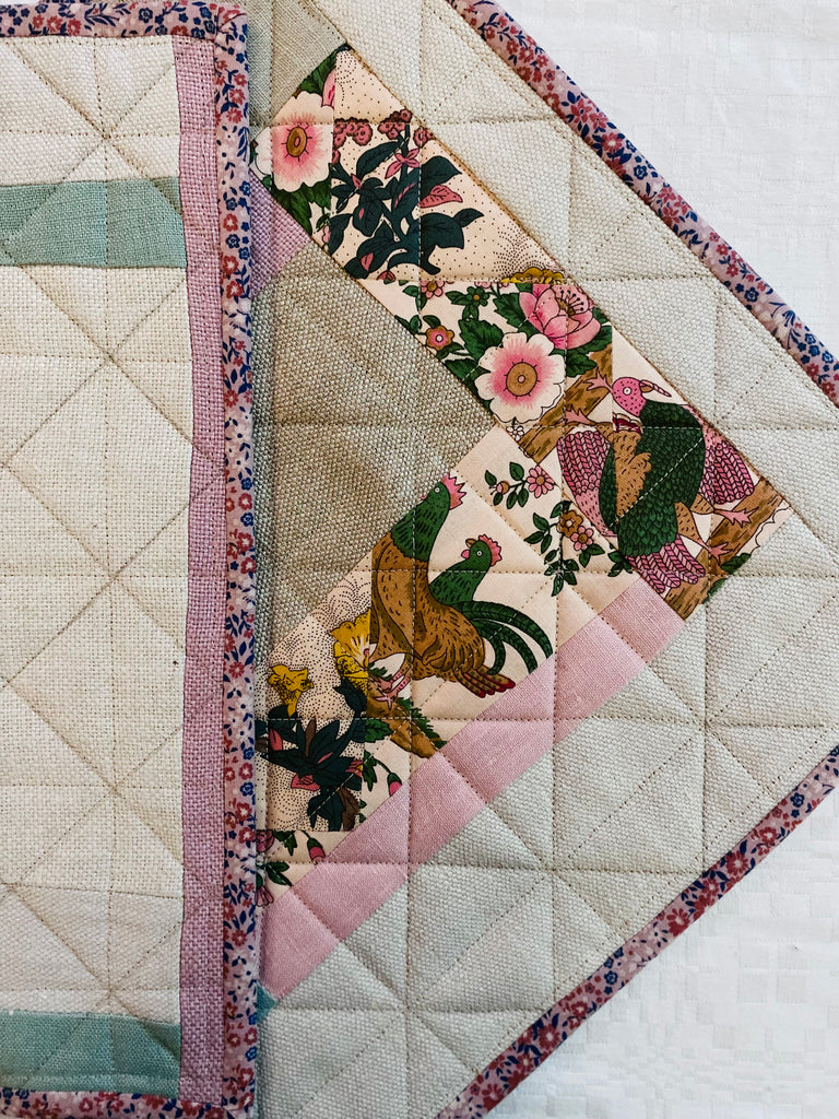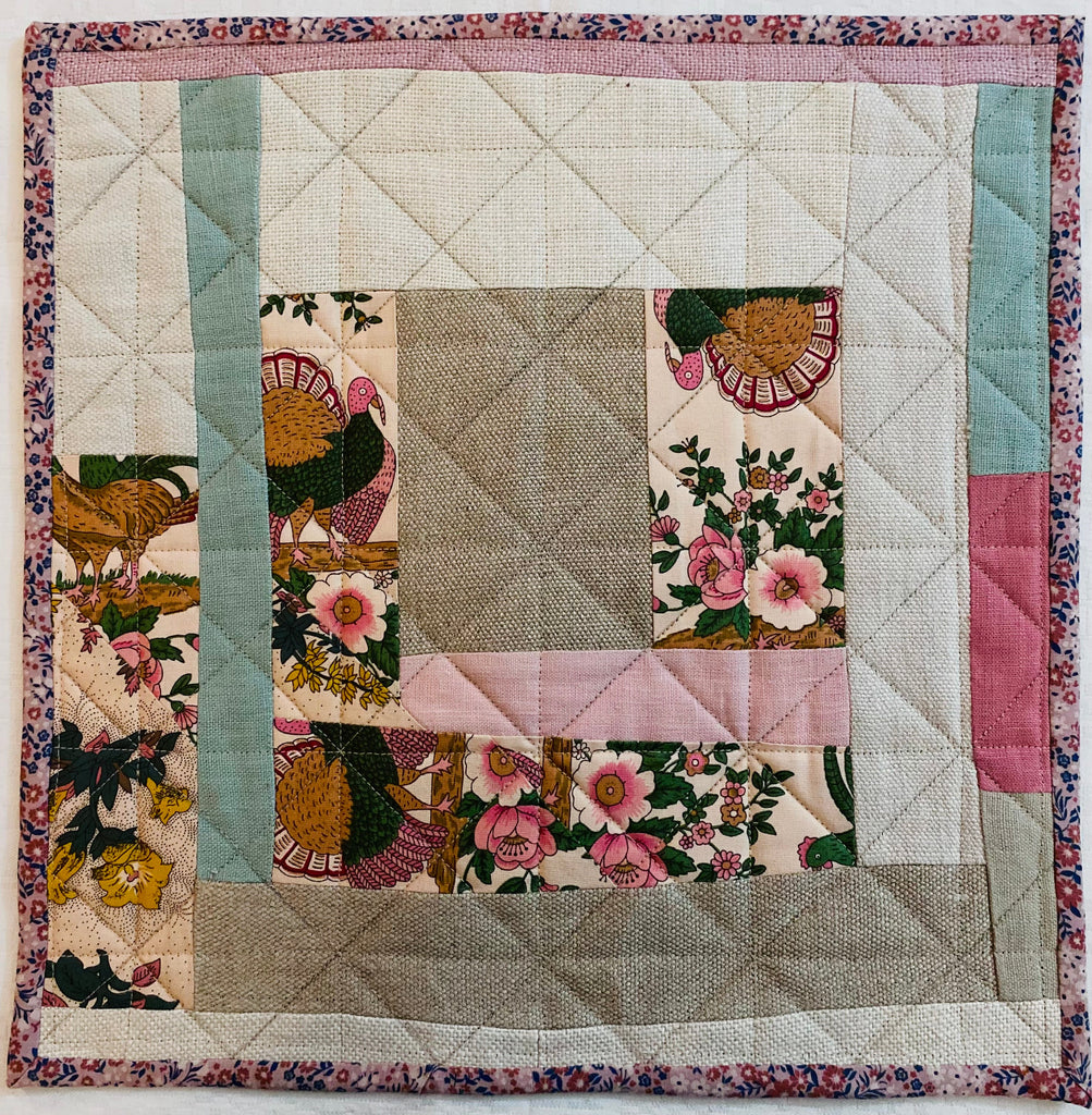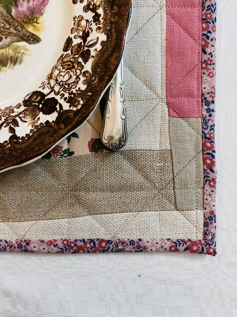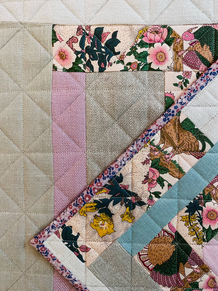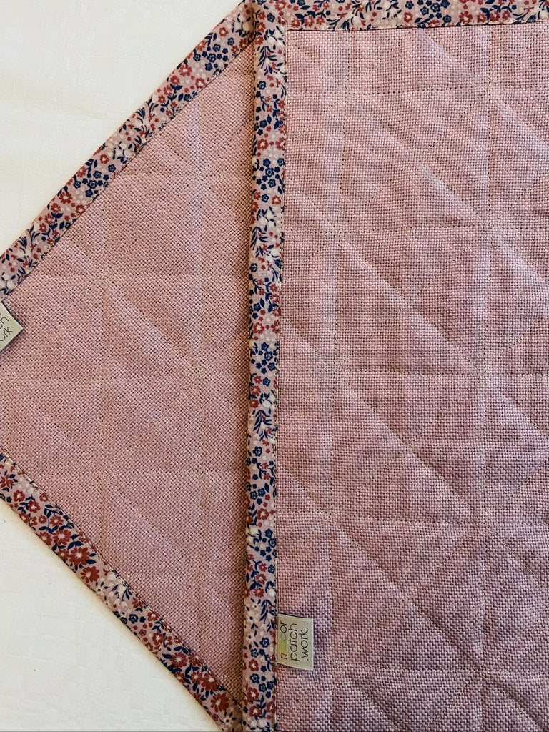 Parte de trás em linho rosa velho, acolchoados com baeta de algodão.